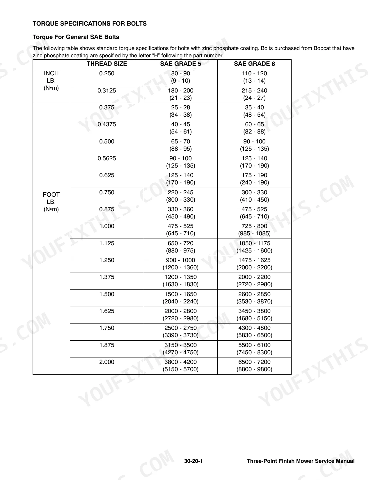 Torque for 0.500 inch SAE Grade 5 bolts65-70 ft-lb (88-95 N•m)p. 69