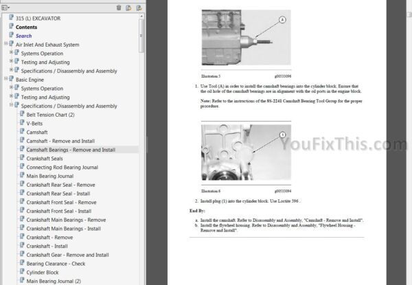 Factory Service Repair Manual For Caterpillar 315 315L Excavators. Step by step Instructions, illustrations, diagrams. Manual include Systems Operation, Testing and Adjusting, Troubleshooting, Specifications and Disassembly and Assembly procedures.