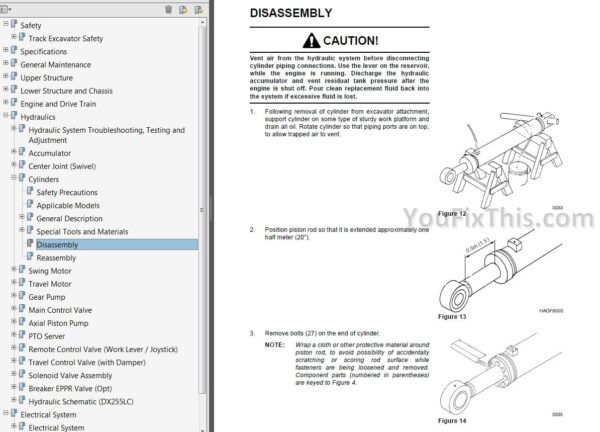 Factory Repair Shop Manual for Doosan Excavators. Manual includes repair and maintenance manuals, installation instructions, circuits, step by step instructions, diagnostic programs, technical specifications, service and repair instructions.
