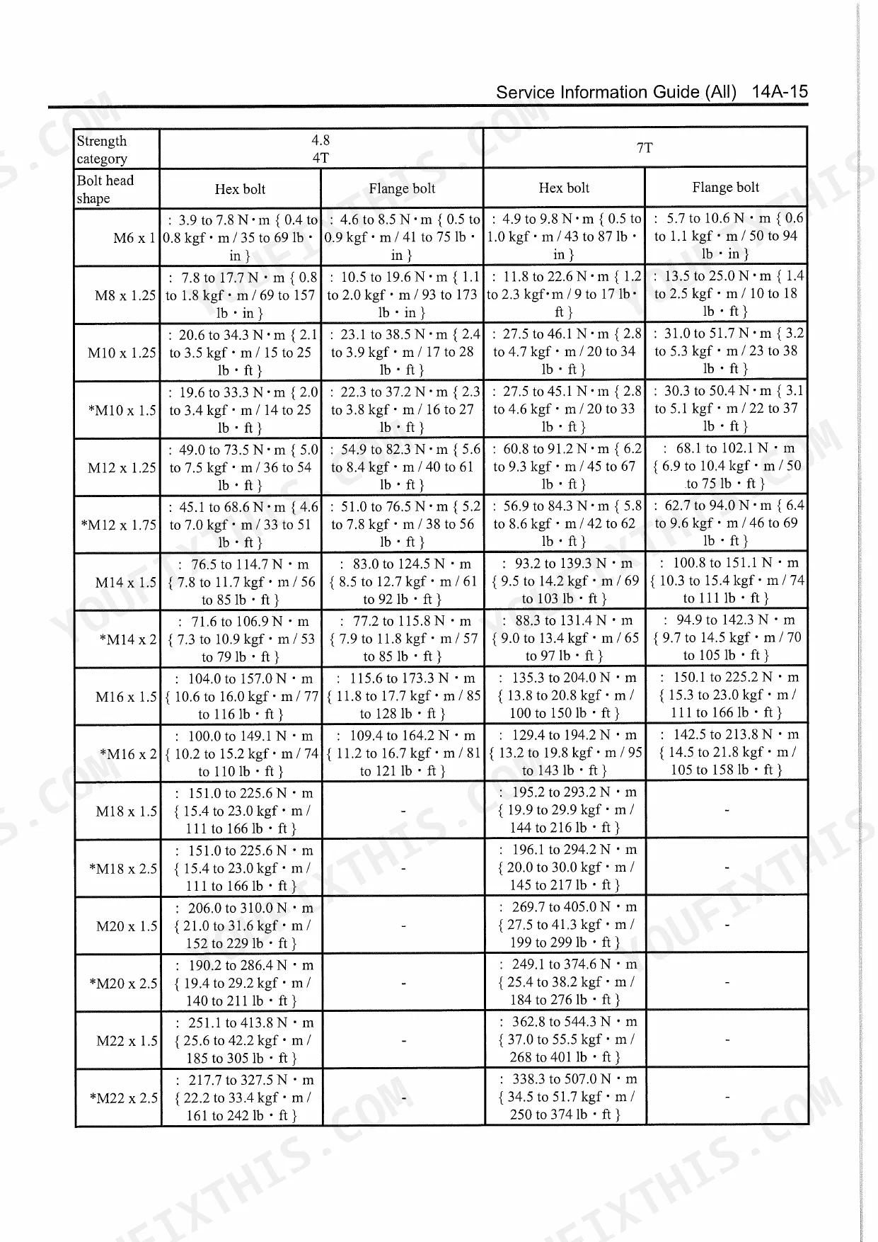 | Fuel filter case tightening torque | 29 N·m { 3.0 kgf·m / 21 lb·ft } | p. 743 |