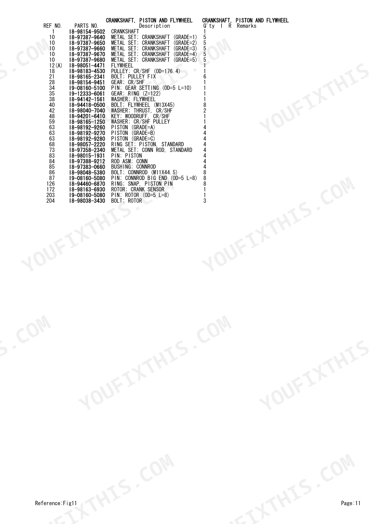 | Crankshaft, Piston and Flywheel | 30-31 | - |