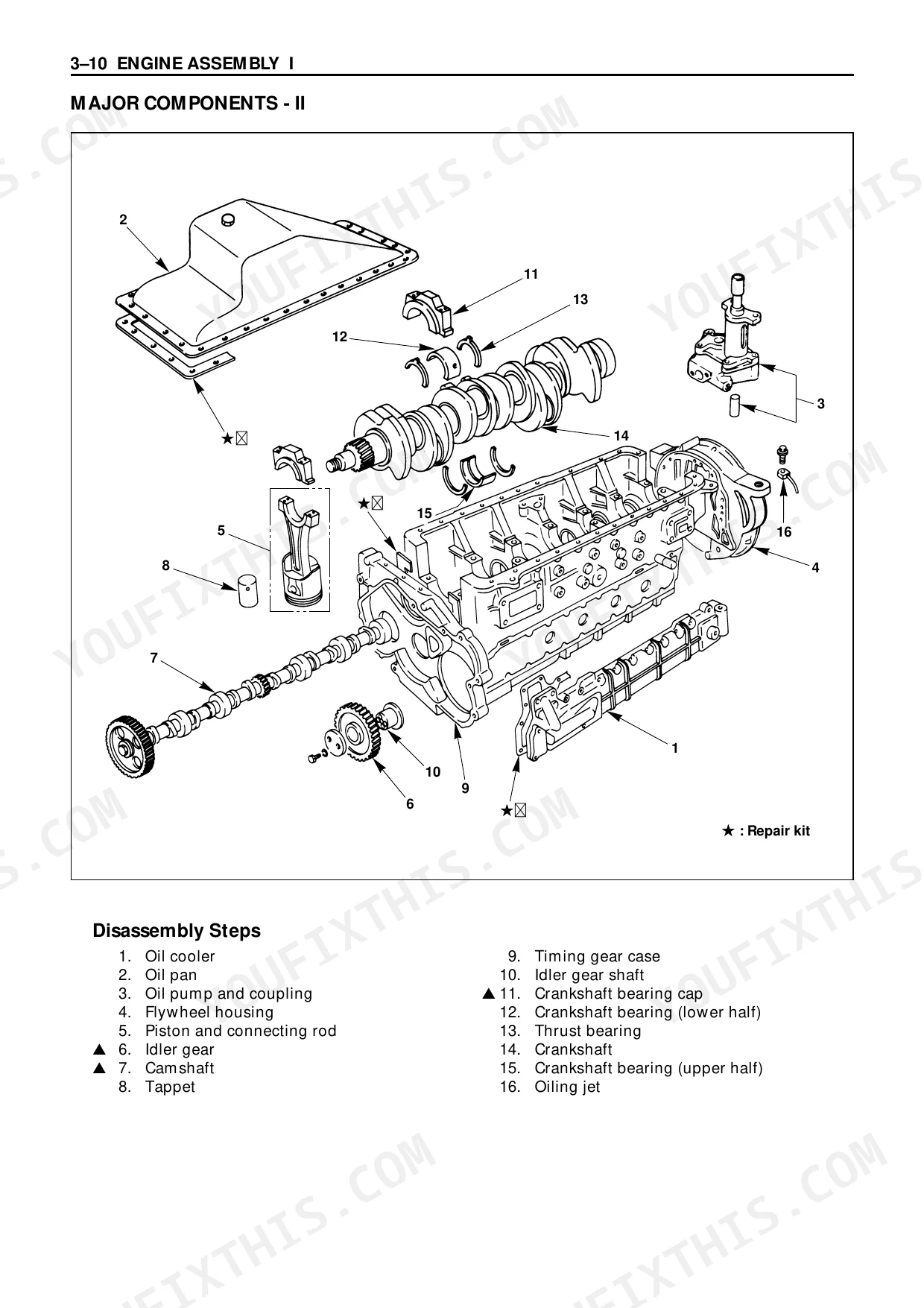 | Engine Assembly I (Disassembly) | 48-63 | External Parts Disassembly Steps, Major Components, Rocker Arm And Shaft Disassembly, Cylinder Head Disassembly |