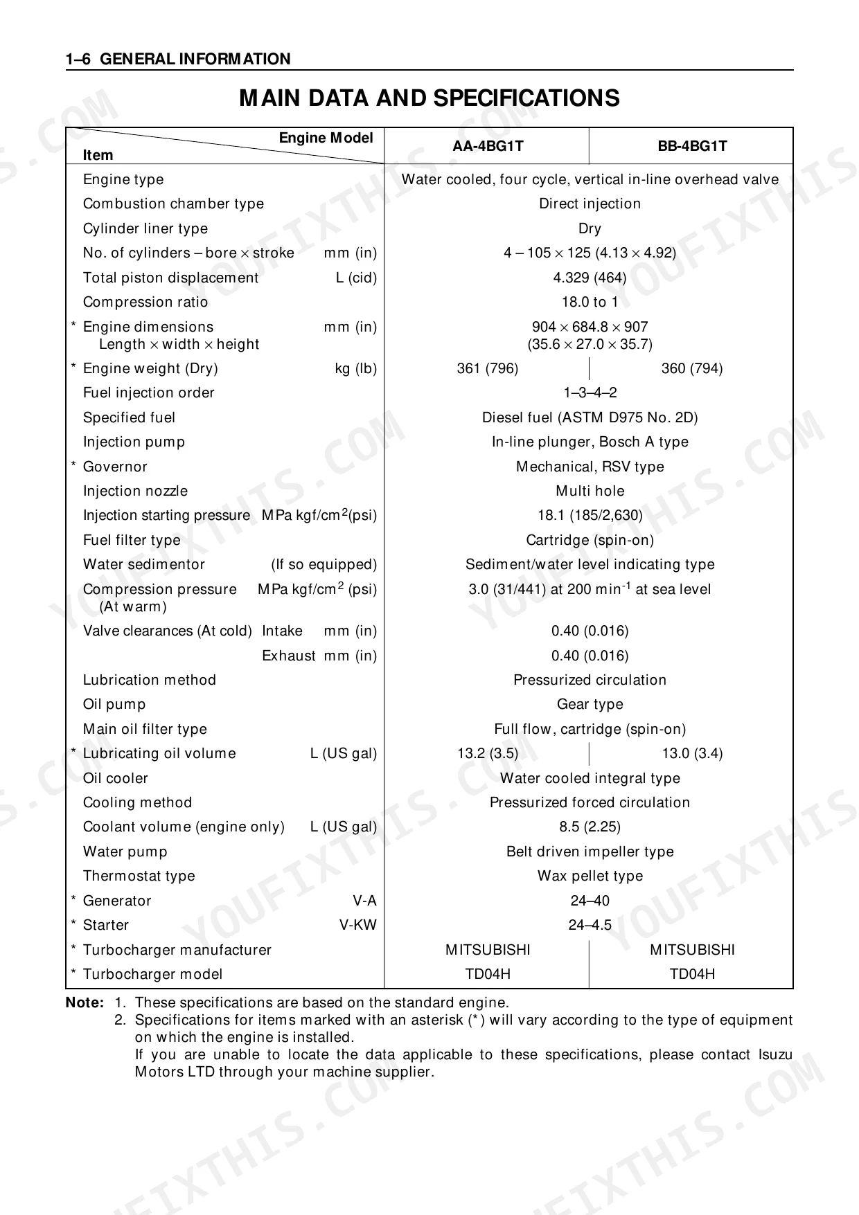 Isuzu AA-4BG1T, AA-6BG1, BB-4BG1T, BB-6BG1T Common Problems This Manual Covers