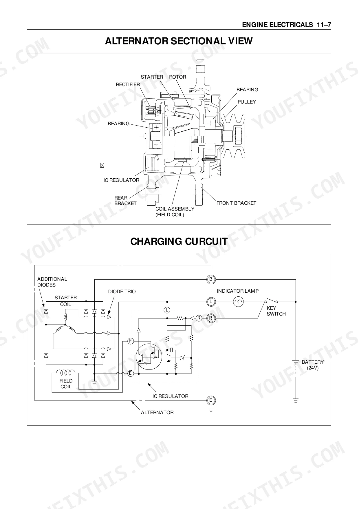 | Engine Electricals | 156-163 | Starter Identification, Starter Main Data And Specifications, Starter Motor Sectional View, Alternator Identification |