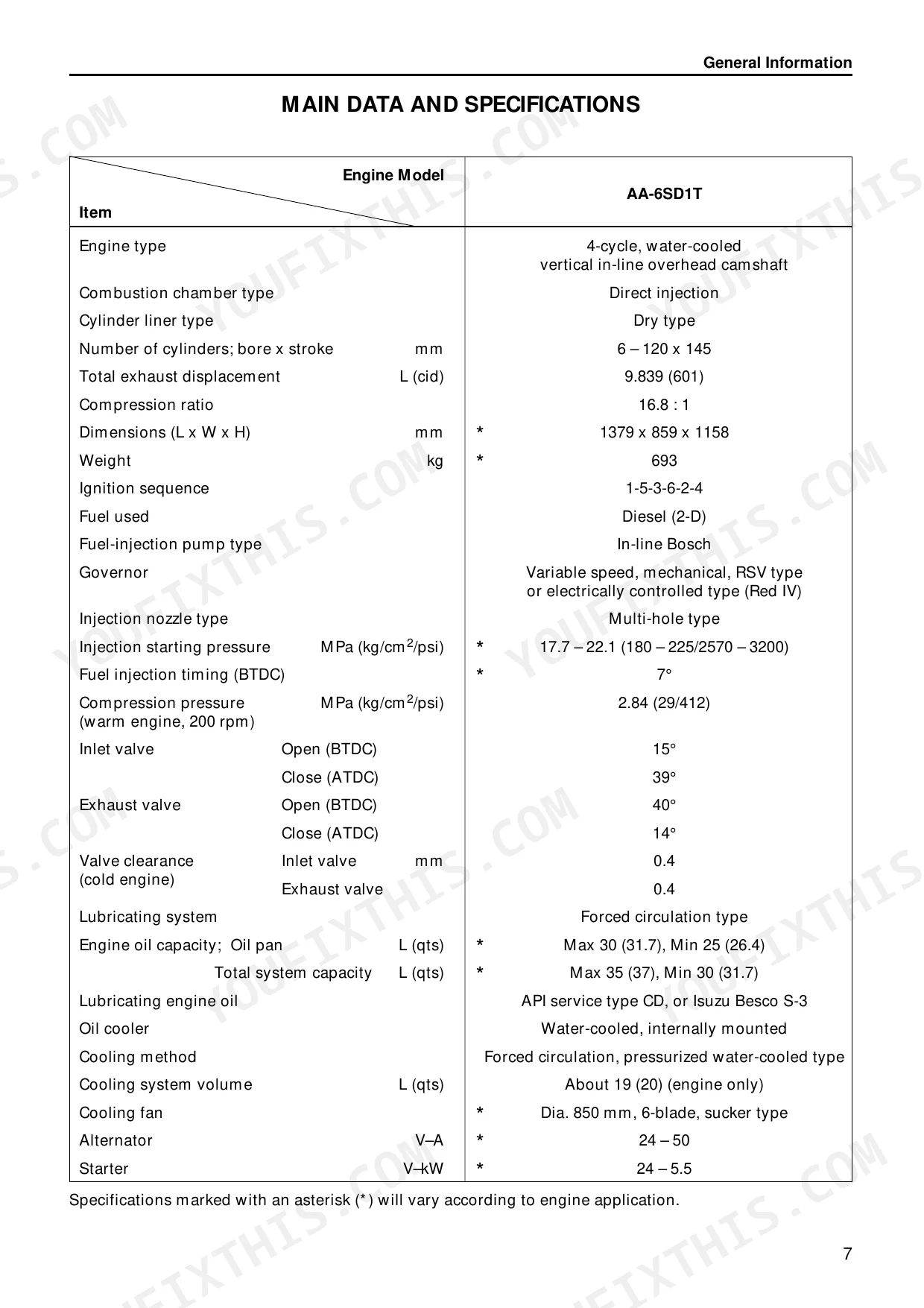 Isuzu AA-6SD1T Common Problems This Manual Covers