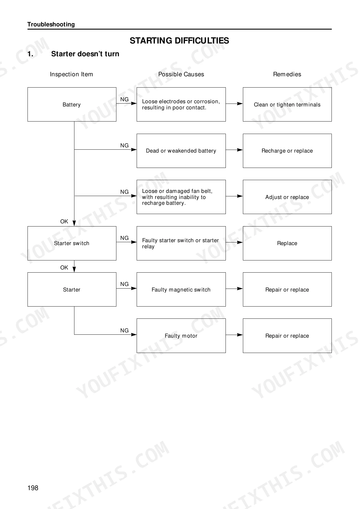 Troubleshooting200-221Starting difficulties, Lack of power, Overheating, Engine sounds