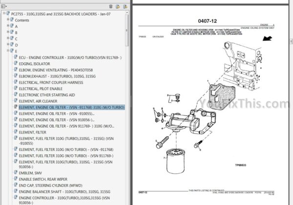 Factory Service Repair Technical Manual For John Deere 310SG 315SG. Step by step Instructions, illustrations, wiring diagrams and charts, maintenance procedures, remove & install, assembly & disassembly.