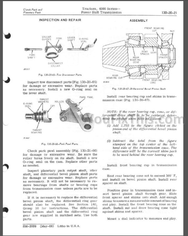 Factory Service Repair Manual SM2039 For John Deere Tractors 4010, 4020. Detailed step by step illustrations, instructions, diagrams for repair procedures, troubleshooting, removal, disassembly, installation, machine specifications, tightening references, maintenance, inspection. Digital PDF format, searchable and bookmarked.