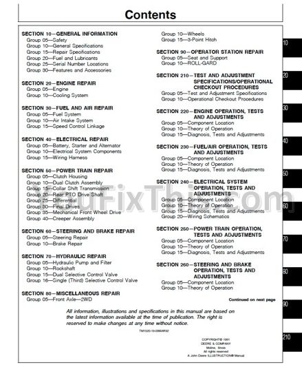 Factory Service Repair Manual TM1520 (09MAR92) For John Deere 5200, 5300, 5400, 5500 Tractors. In content tons of illustrations, instructions, diagrams for step by step remove and install, disassembly, installation, as well as machine specifications, tightening references, troubleshooting, inspection, systems diagnosis, system theory of operation, performance testing, tests and adjustments, operational check, operation, unit locations and identification, diagnostic codes, schematics and lot of other useful information. digital pdf format, searchable and bookmarked. fully digital version with bookmarks searchable text and scalable images.