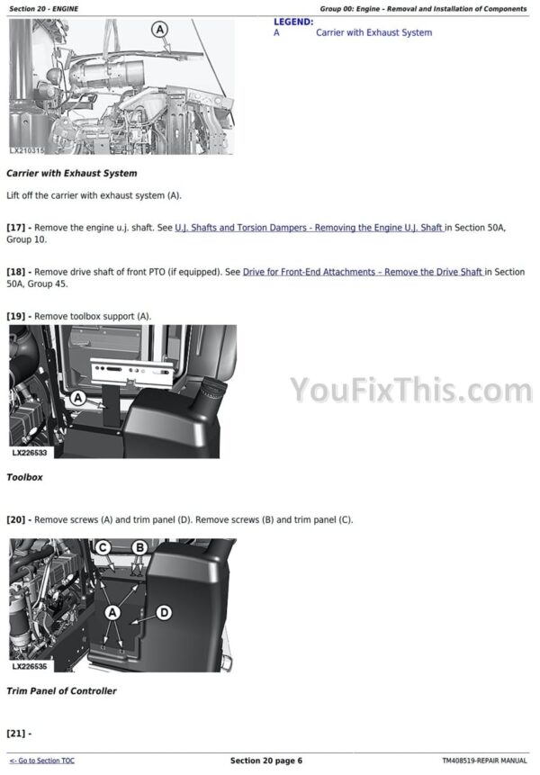 Factory Service Repair Manual TM408519 For John Deere 6110M – 6145M Tractors. Tons of illustrations, instructions, diagrams for step by step remove and install, assembly and disassembly, service, maintenance, inspection, repair, troubleshooting, tune-ups. Fully digital version with bookmarks searchable text and scalable images.