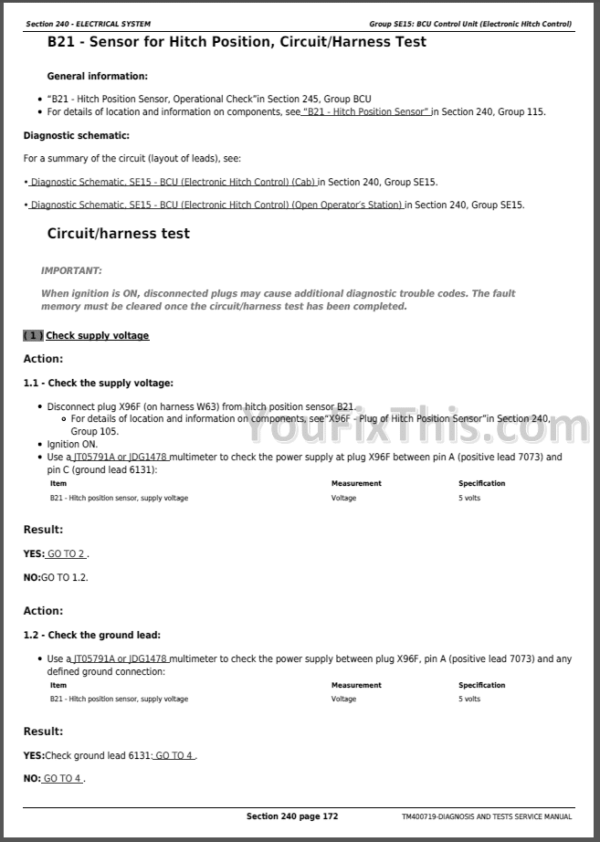 Factory Diagnostic Technical Manual TM400719 For John Deere 6230—7230 Tractors. Detailed step by step illustrations, instructions, diagrams for Systems Diagnosis, System Theory of Operation, Performance Testing, Tests and Adjustments, Operational Check, Operation, Unit Locations and Identification, Diagnostic Codes, Schematics and lot of other useful information. Fully digital version with bookmarks searchable text and scalable images