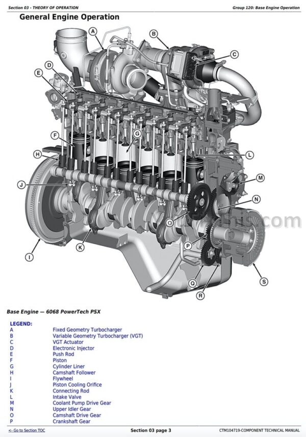 Factory Service Repair Manual CTM104719 For John Deere PowerTech 6068 Diesel Engine Above 130kW. Detailed step by step Repair Information. Illustrations, instructions, diagrams.