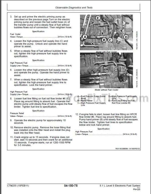 Factory Service Repair Manual CTM255 For John Deere PowerTech 8.1L Diesel Engines Level 9 Electronic Fuel System With HPCR. Detailed step by step Repair Information. Illustrations, instructions, diagrams.