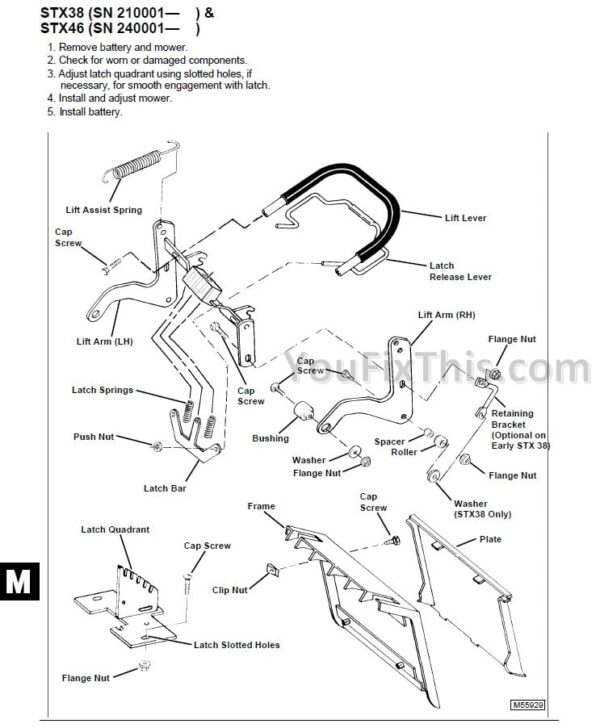 Original Factory Technical Repair Manual For John Deere STX30 STX38 STX46 Lawn Garden Tractors with bookmarks and searchable text. Step by step instructions for service, maintenance, repair, overhaul, tune-up. This service manual is one of the most important tools available to the service technician.