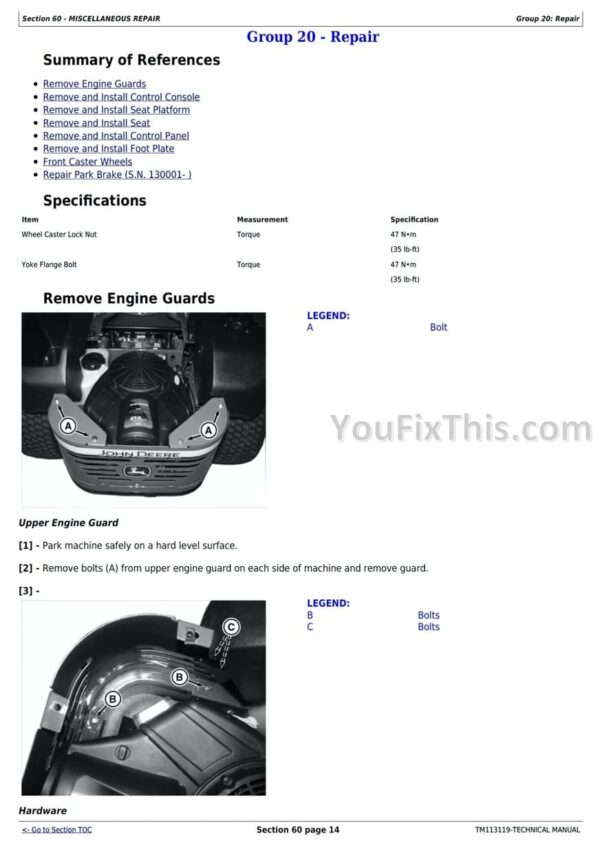 Factory Diagnosis and Repair Technical Manual TM113119 For John Deere Z625 Z645 Z655 Z665 Mowers. Detailed step by step illustrations, instructions, diagrams for Systems Diagnosis, System Theory of Operation, Performance Testing, Tests and Adjustments, Operational Check, Operation, Unit Locations and Identification, Diagnostic Codes, Schematics and lot of other useful information. Includes electrical wiring diagrams and a lot of other useful information for repair and servicing.