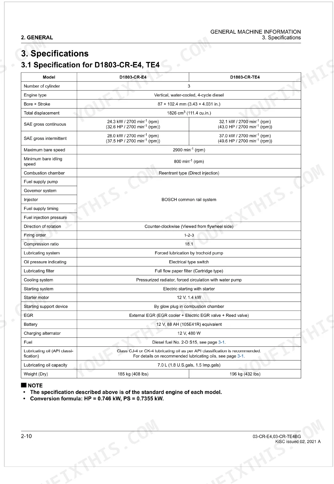 | Bore x Stroke | 87 x 102.4 mm | p. 36 |